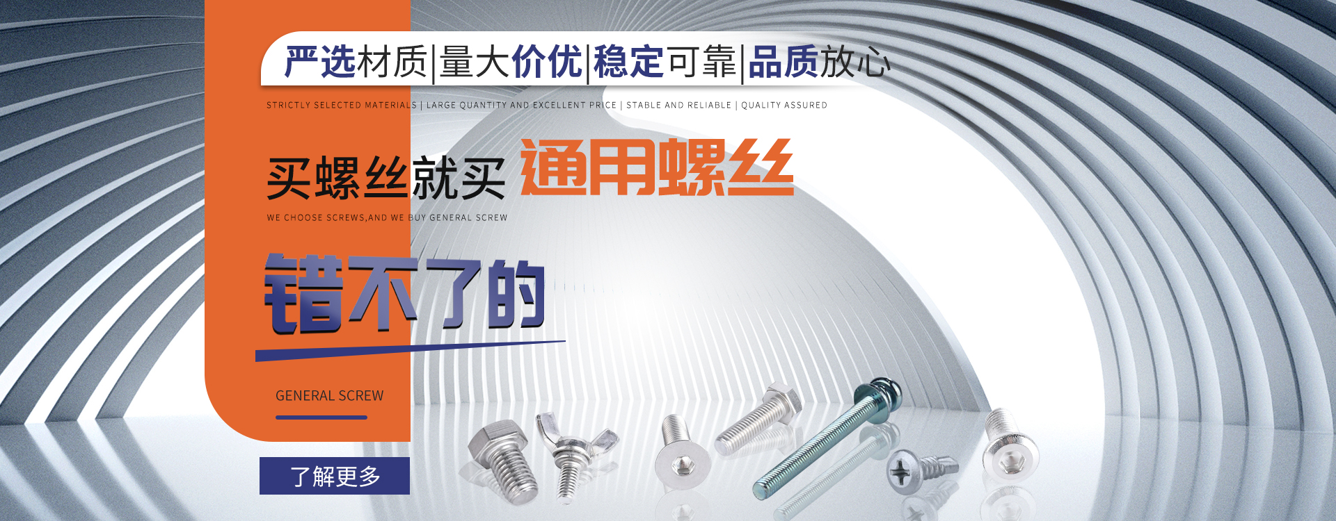 中山市通用螺絲制造有限公司成立于1987年,工廠坐落于廣東四小虎之一的中山市,北連廣州,毗鄰港澳??傉嫉孛娣e14000m 2,足有兩個足球場。我司于1998年通過德國萊茵TUV ISO9002認證,于2002年通過TUV ISO9001:2000認證。2008年通過ISO 14000認證。我司主營自攻螺絲、組合螺絲、機械螺絲、防松螺絲等標(biāo)準和非標(biāo)準件,我司既可按客戶的要求提交所需的產(chǎn)品,也可以為客戶量身定做所需產(chǎn)品。我司擁有專業(yè)的產(chǎn)品檢測隊伍和投影分析儀、金相、硬度計(韋氏和洛氏)、扭矩力測試計等完善的檢測設(shè)備,為電子、電器、五金塑料、衛(wèi)浴、家具、機械、汽配等行業(yè)提供符合歐盟質(zhì)量、環(huán)保要求的產(chǎn)品。2006年,我司自主開發(fā)的ERP管理系統(tǒng),使我們的生產(chǎn)和服務(wù)效率得到了極大的提高。 經(jīng)過三十多年地摸爬滾打,依靠眾多新老顧客的支持,通用螺絲逐漸成長為國內(nèi)知名的緊固件供應(yīng)商。了解更多 >>